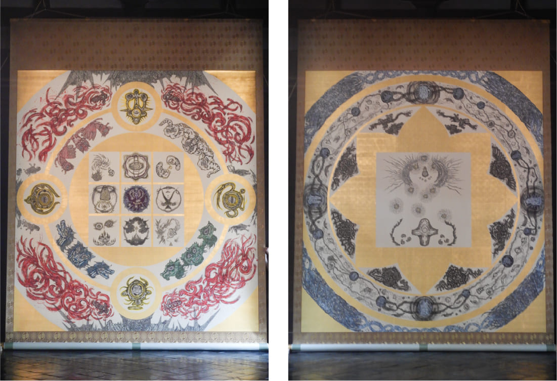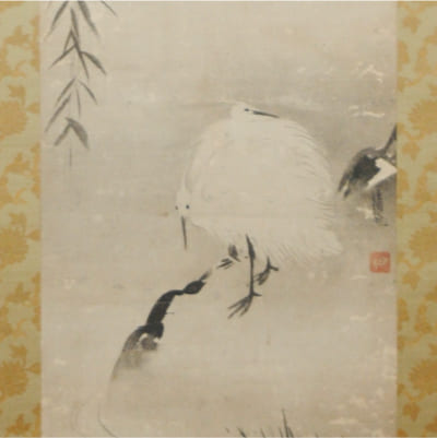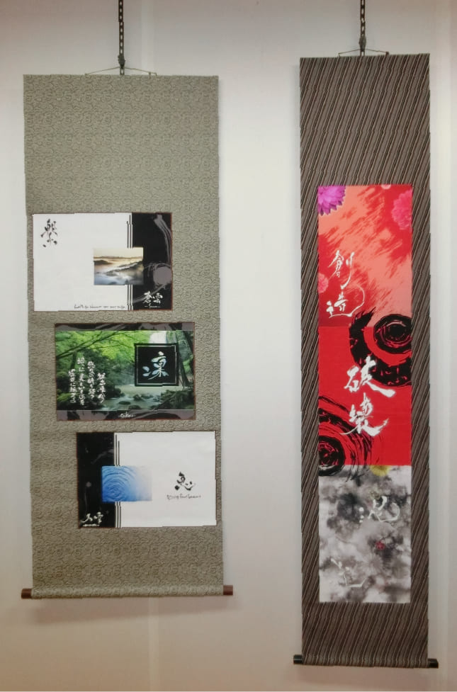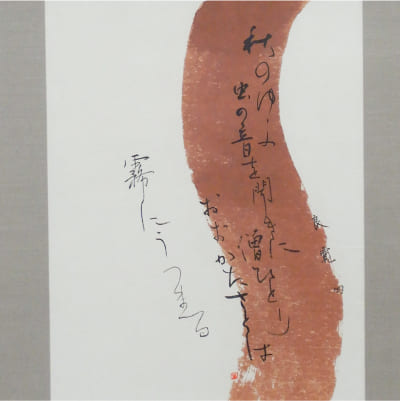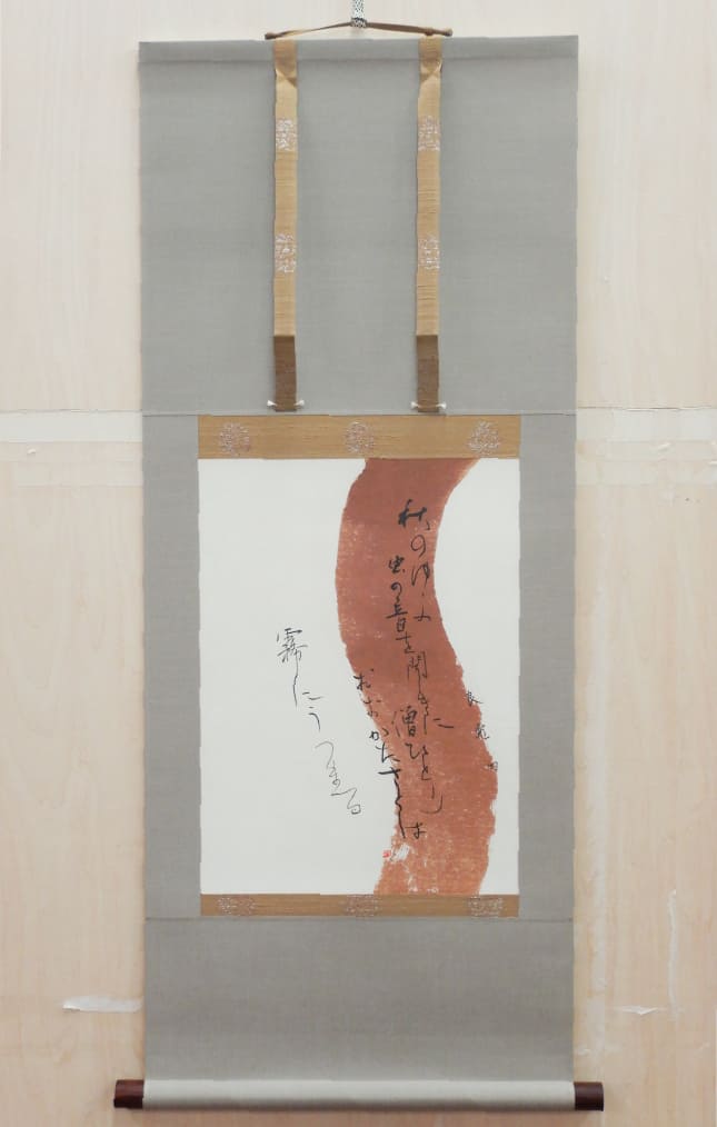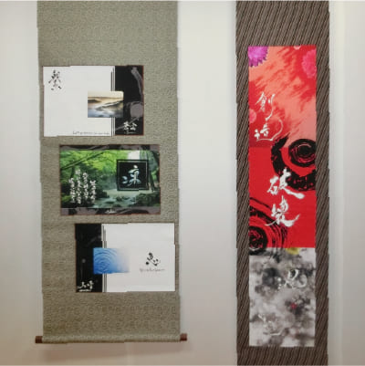 掛軸に仕立てる場合、「絵具が厚塗りされていない」、「滲まない絵具を使用している」、「巻くことができる厚みである」などがございます。